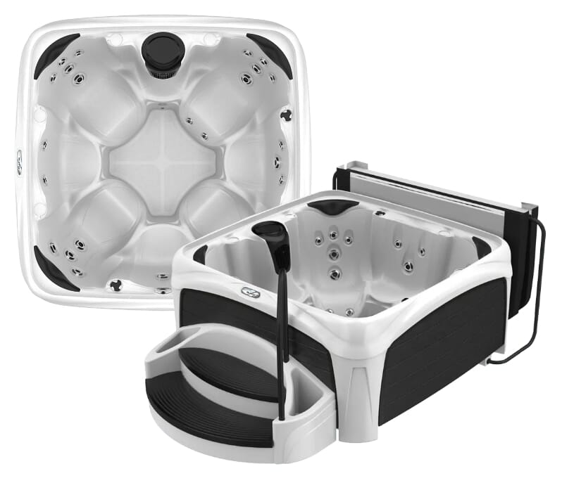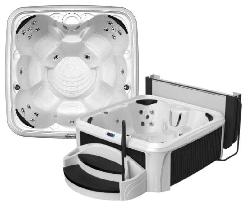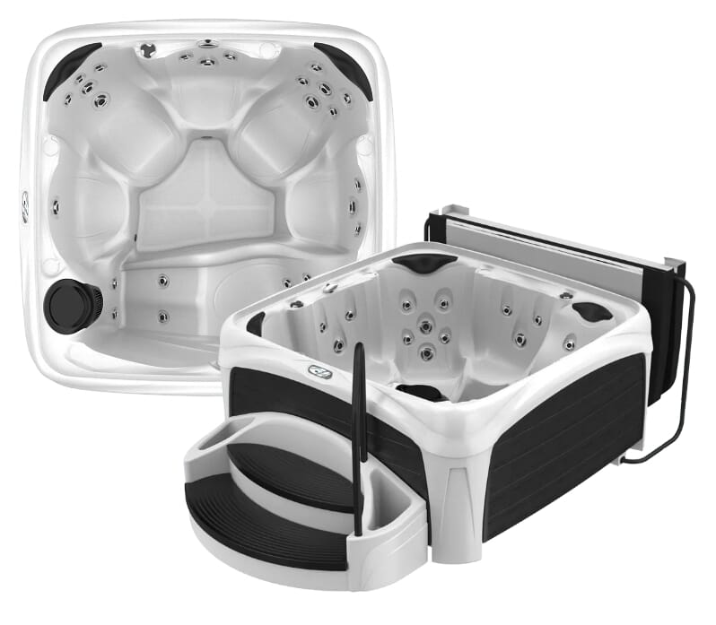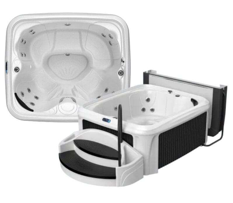 Suite option available. Suites include steps with planters, storage and handrail, plus cover lifter.