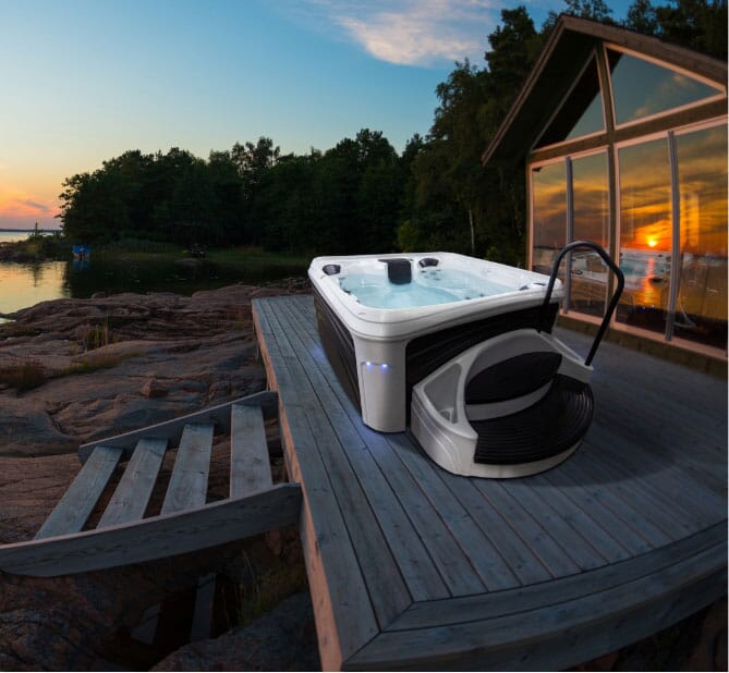 Our Algonquin is a double lounger European Style Hot Tub that is the perfect solution for couples who want to relax in total luxury. Two people can recline in complete comfort while enjoying conversation and soothing hydrotherapy and relaxation.